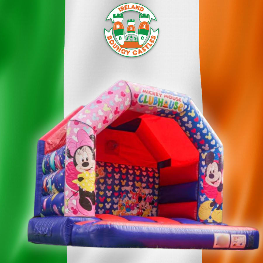 Oh boy! Put your party on the map with our Mickey Mouse Clubhouse Bouncy Castle. Bursting with bright reds, blues and pinks plus adorable Mickey & Minnie graphics, this 12x12 inflatable is a massive hit for birthdays, preschool parties, school fun days and family celebrations. The covered roof and high, cushioned walls create a comfy, shaded bounce zone so little Mousketeers can jump safely for hours.