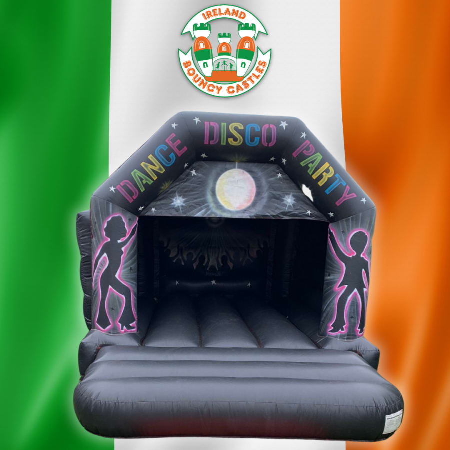 Get the party started with our show-stopping Black Disco Bouncy Castle, the ultimate inflatable for dance-loving kids and unforgettable celebrations! Featuring a striking black colour scheme with glowing neon silhouettes, disco lights, and a crowd-partying backdrop, this castle delivers serious fun with a nightclub vibe – perfect for birthdays, school events, and special occasions anywhere in Ireland.