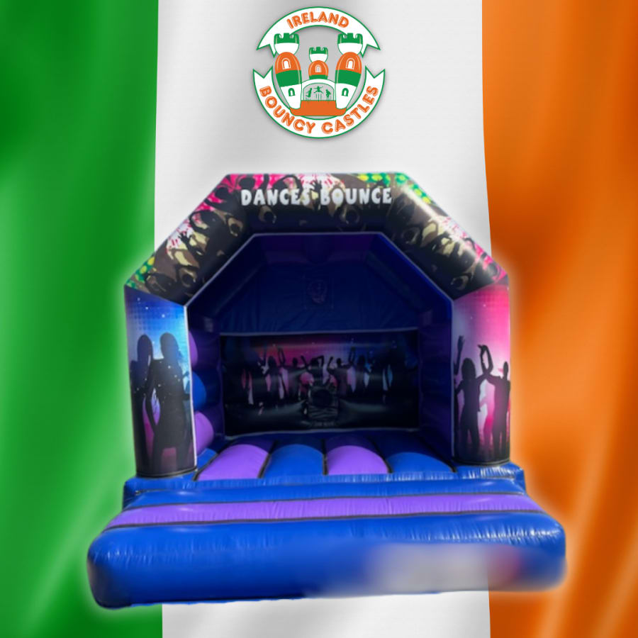 Bring the dancefloor to your garden with our exciting Dance Bounce Bouncy Castle – the perfect inflatable for music lovers, disco-themed parties, birthdays, and school events across Ireland! With its electric blue and purple colour scheme, silhouette-style dancers, and stage-like backdrop, this bouncy castle creates a high-energy vibe that kids absolutely love.