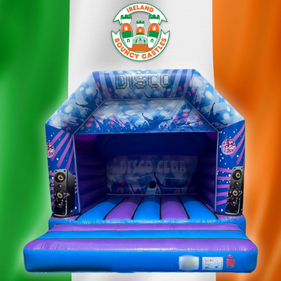 Take your party to the next level with our 15ft x 15ft Dance Bounce Bouncy Castle – one of the biggest and most vibrant inflatables in our collection! Designed with a full nightclub-style look, this blue and purple bounce house features bold “DISCO CLUB” graphics, speaker visuals, silhouettes of dancers, and a spacious bounce area that gets everyone moving.