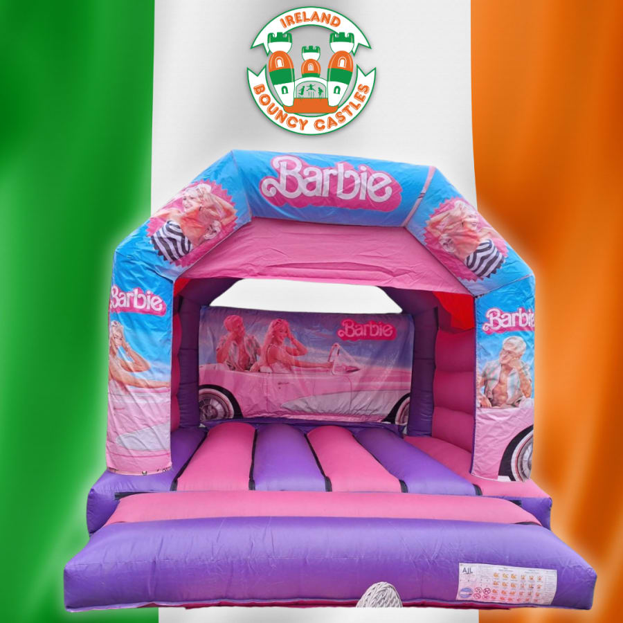 Think pink! Our Barbie Bouncy Castle brings all the glam to your party with bold, hot-pink colours and fabulous Barbie artwork. Perfect for birthdays, communions, school fun days and garden celebrations, this 12x12 inflatable keeps kids smiling for hours while the covered roof and high, cushioned walls provide a comfy, shaded bounce zone.