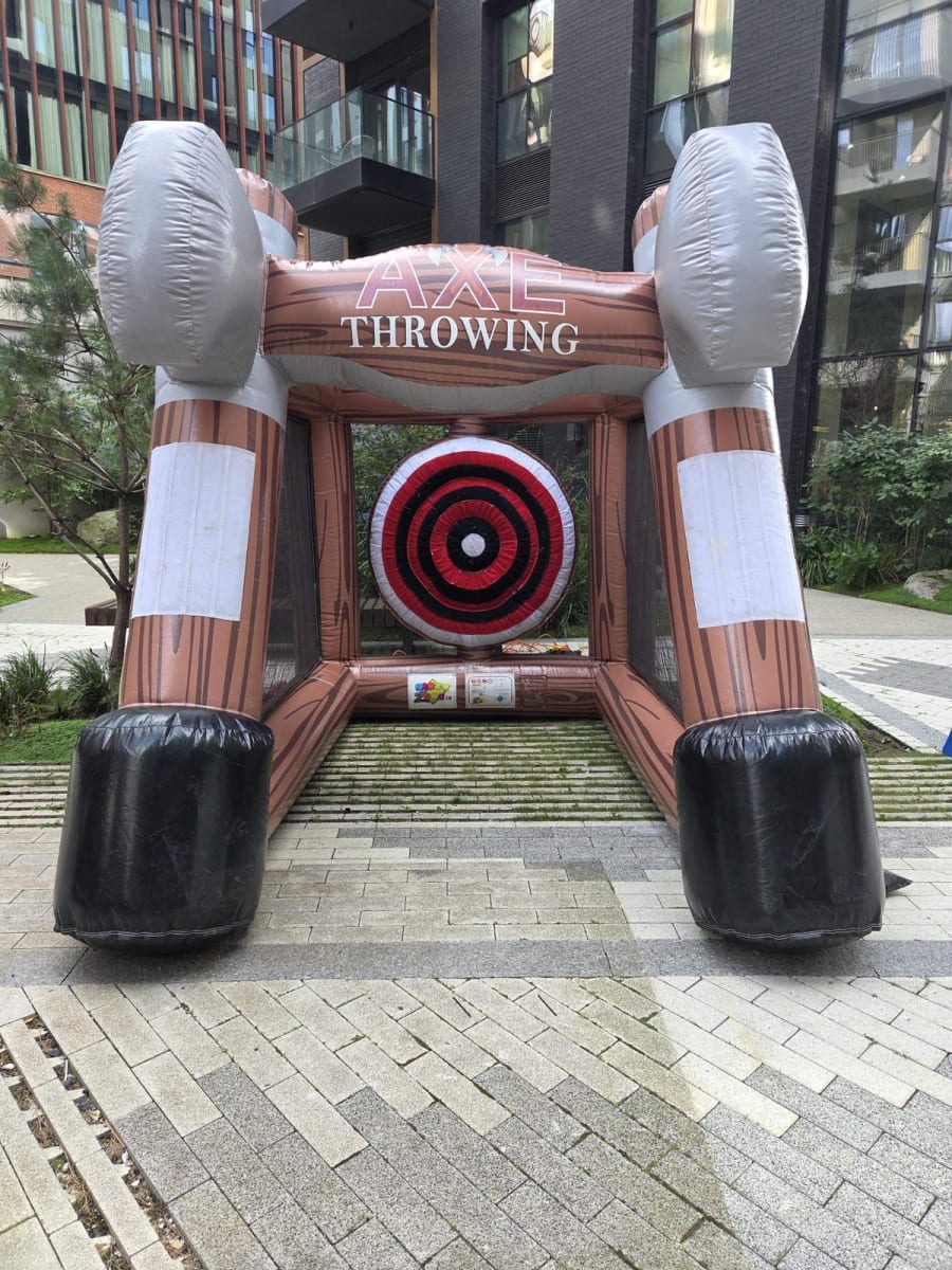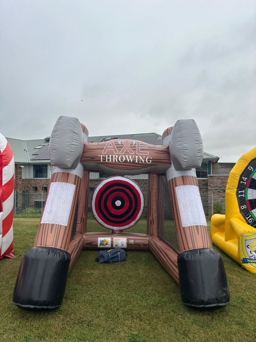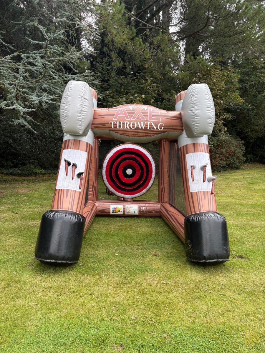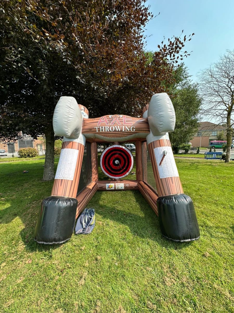Bring some competitive fun to your next party or event with our Inflatable Axe Throwing game. Safe and exciting for both kids and adults, players take turns throwing soft Velcro axes to hit the target and score points. This inflatable game is a huge hit at birthdays, school fun days, corporate events, and community fairs.