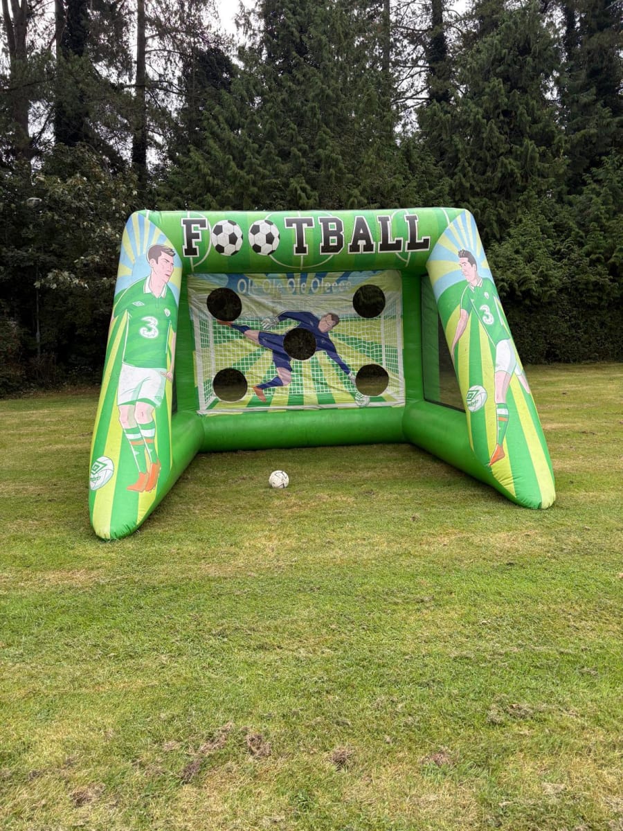 Bring the thrill of the big game to your event with our FAI Penalty Shootout inflatable, measuring 12ft wide. Featuring vibrant Irish football graphics and a target backdrop, this inflatable lets players test their shooting skills by aiming for precision holes while under the “pressure” of scoring against the keeper. Perfect for football fans of all ages, it’s a brilliant attraction for sports days, school events, parties, and community celebrations.