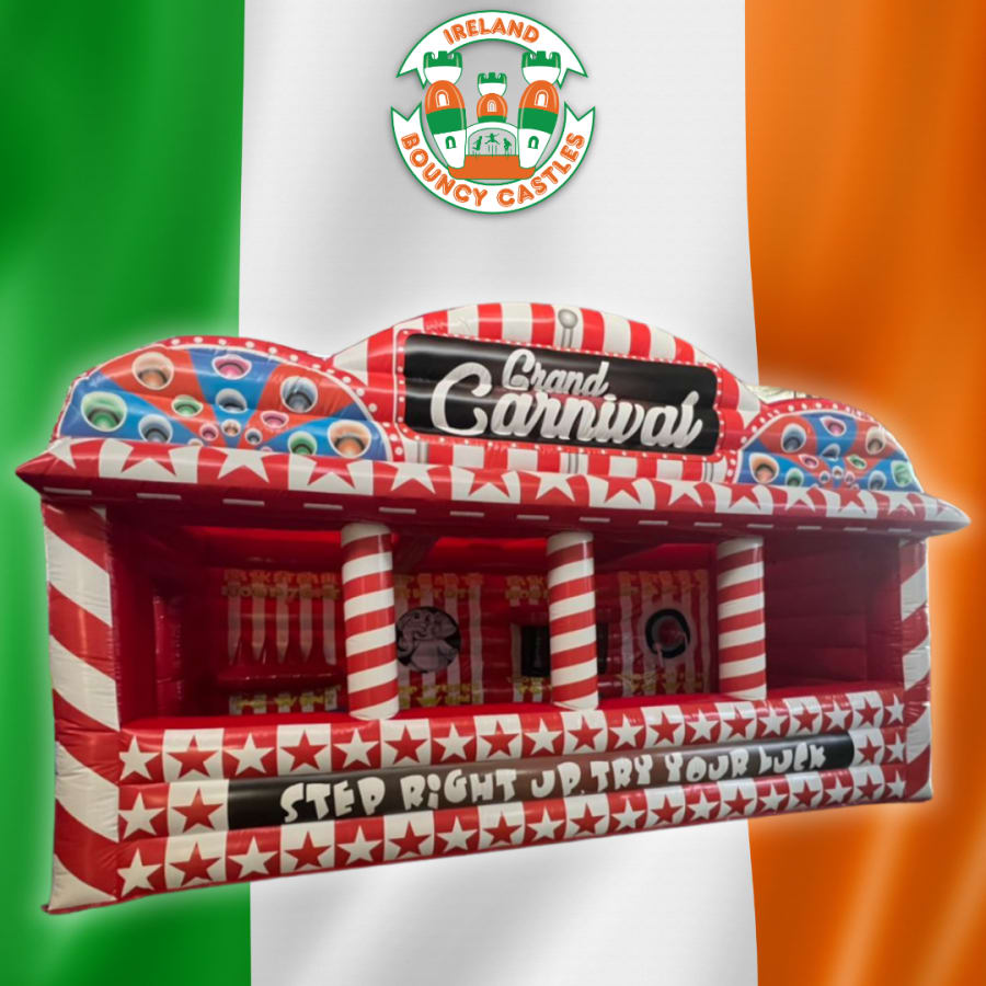 Step right up! Our Grand Carnival Stall brings the magic of the funfair to your event with classic midway games, bold red-and-white striping, and an eye-catching “Grand Carnival” marquee. Perfect for school fairs, fundraisers, community days, family fun days, confirmations/communions, and corporate family events, this inflatable booth keeps queues moving and guests smiling. We supply soft game pieces (bean bags/foam balls) and clear rules so it’s easy to run as pay-to-play or token games.