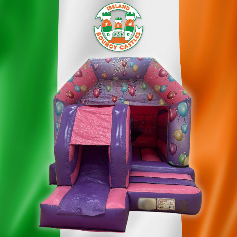 Bring colour, excitement, and non-stop fun to your event with our Pink Party-Time Front Slide Bouncy Castle! Perfect for birthdays, school fun days, community celebrations, and weekend parties, this inflatable features a vibrant pink and purple design covered in cheerful balloon and confetti graphics. Kids will have a blast bouncing, jumping, and playing before racing down the thrilling front slide again and again.