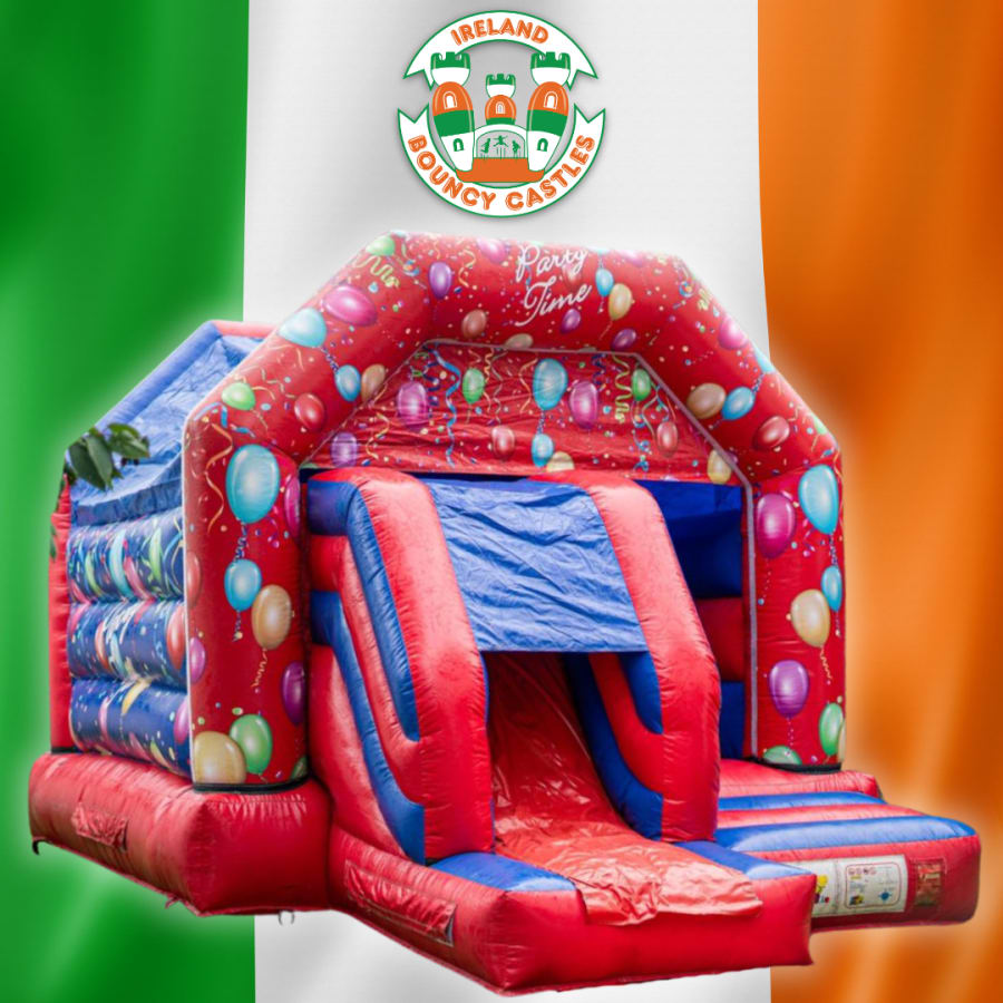 Add a burst of colour and excitement to your event with our Red & Blue Party-Time Front Slide Bouncy Castle! Featuring a bright red and blue design covered in colourful balloon and confetti graphics, this inflatable is perfect for birthdays, school fun days, community events, and weekend parties. Kids will love bouncing, jumping, and playing before racing down the thrilling front slide over and over again.