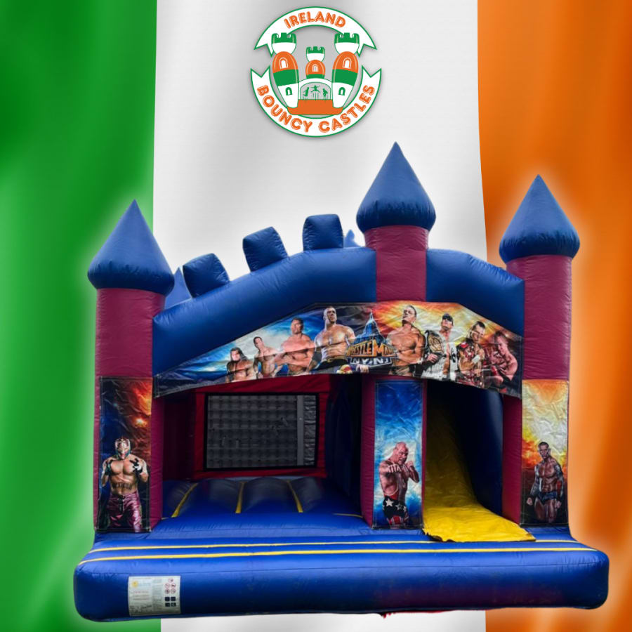 Ideal for birthdays, school fun days, community events, and wrestling-themed parties, this inflatable is suitable for both indoor and outdoor use. The covered roof design means the fun continues rain or shine – perfect for the Irish weather. We provide full delivery, professional setup, and collection across Ireland, so you can enjoy a hassle-free hire from start to finish.