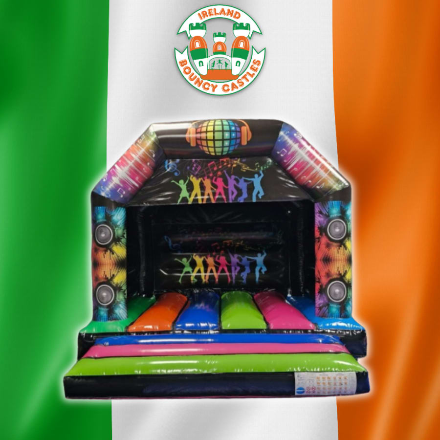 Add a burst of energy to your celebration with our Black Multi Colour Disco Bouncy Castle, featuring a vibrant mix of neon colours against a sleek black background and fun disco-themed graphics. Perfect for birthdays, school fun days, and community events across Laois and surrounding areas, this inflatable creates the ultimate party atmosphere for kids.