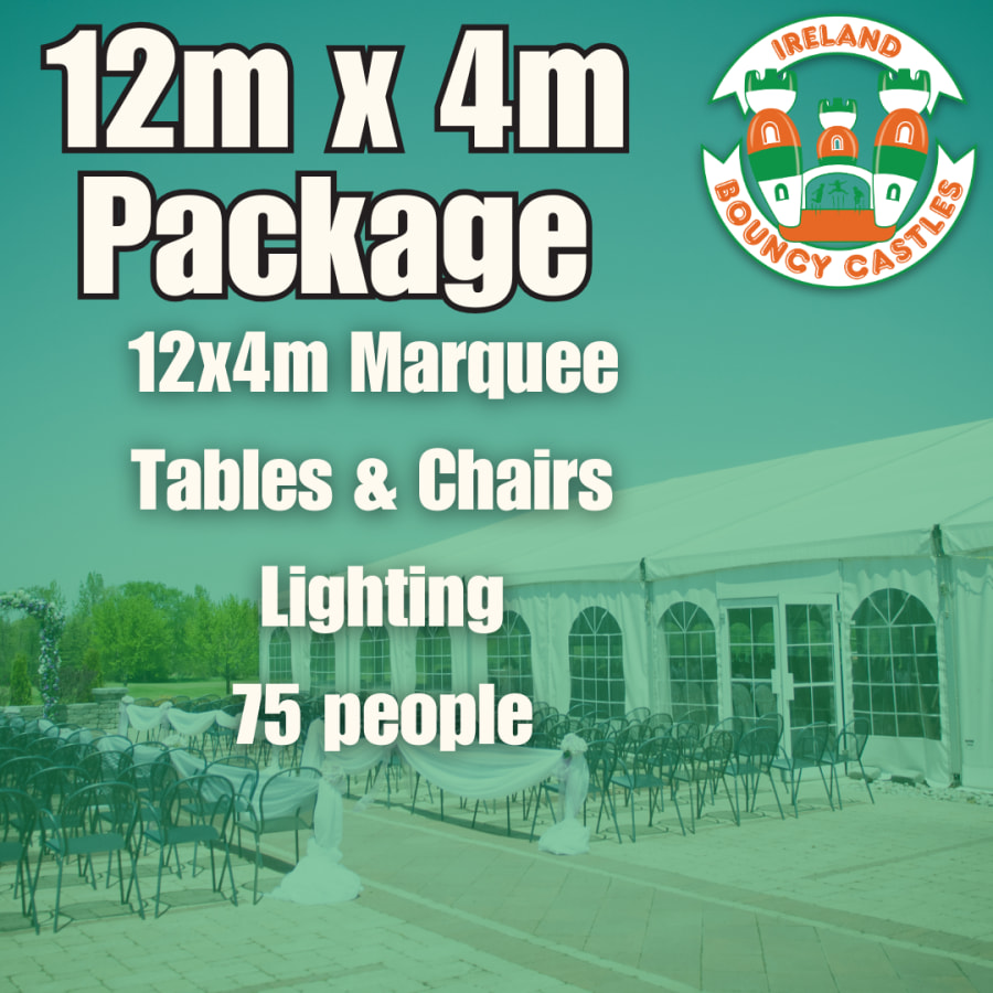 Take your celebration to the next level with our 12m x 4m Marquee Hire Package, ideal for weddings, birthdays, corporate functions, and large family gatherings across Ireland. This premium package provides everything you need for a professional, comfortable, and stylish event space – all in one convenient booking.